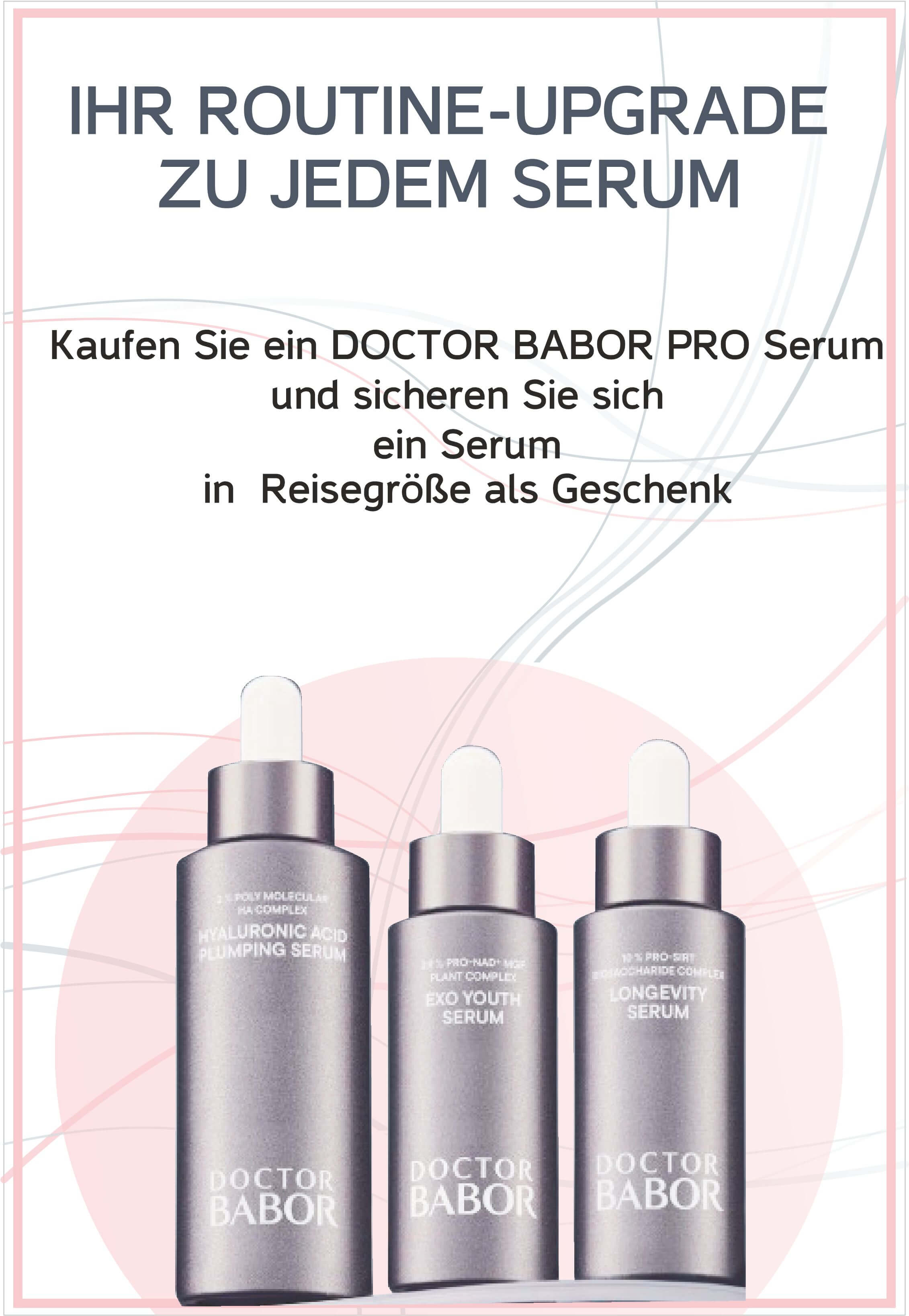 Beim Kauf eines DOCTOR BABOR PRO Serums erhalten Sie ein Serum in Reisegröße (15 ml) im Wert von 39,90 € gratis dazu